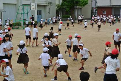 2学期最初の児童集会は、ふえおにでした。最近は、天気も悪く運動場を走り回れることも少なかったのですが、運動場を元気に走り回れるいい機会になりました。