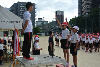 秋晴れのもと(今日は久しぶりにいい天気)1時間目に全体練習を行いました。まずは、諸注意、体操隊形の確認をした後、入場行進。そして開会式。優勝旗・準優勝旗の返還、誓いの言葉や校歌斉唱。そして、はじめの体操(ラジオ体操)、と練習をしていきました。入場行進から開会式と、児童会を中心にして進めていきます。