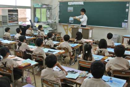 今日は、1年生の「まほうのとりとたびをしよう!」を題材とした授業を全員が観て、研究討議会を行いました。