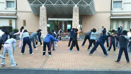 朝六時に起床。眠気は残っていますが元気に体操です。なお天候は良いですが、すこし肌寒いです。
