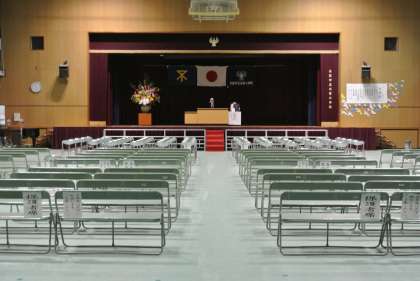 みんなでつくり上げた会場の中、明日、卒業生が最高の卒業式を迎え、希望を持って巣立って行ってくれることを願っています。