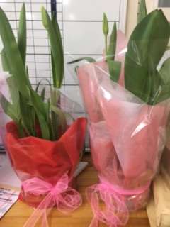 地域からいただいたチューリップの鉢をお持ち帰りになっておられない方は、学校までお知らせください。