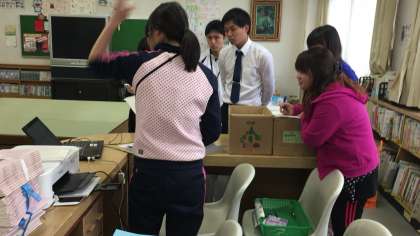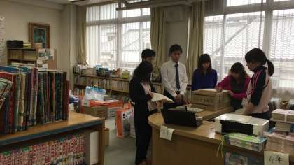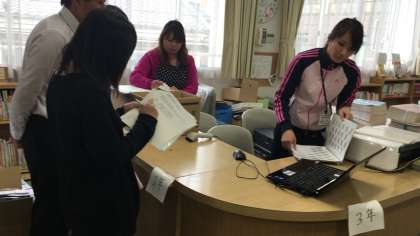 新しく来られた先生達に、図書の貸し出しバーコードについての研修会を行いました。貸し出しカードに記入するよりも早く、スムースに貸し出しができ、しかも読書の記録にもなります。
