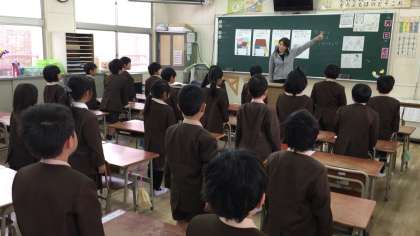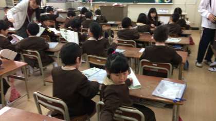 今日の手紙を配っています。前の人が、後の人に渡す時「はい、どうぞ。」と言って渡し、受け取った人は「ありがとう。」と返しています。小さなことですが、大事にしたいですね。