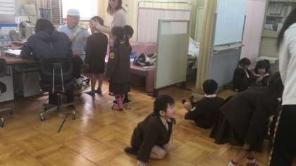 給食を食べた後、校医先生に診ていただきました。虫歯などがあれば、早めに治しましょう!終わった後も、戸口の方を見て、静かに待つことができました。