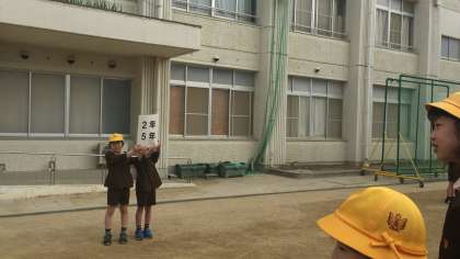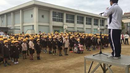 新学年になって運動場で初めての全校朝会です。8時半には大体の学年が揃っていました。さすがです!