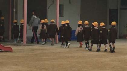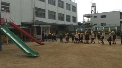 みんなで並んで教室に入ります。初めてのことで少し緊張したかな?