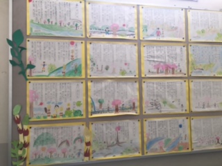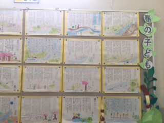 ゆっくり丁寧に手本を見ながら写した作品を、廊下の掲示板に貼り出しています。