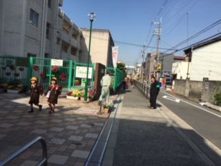 今朝の登校見守り