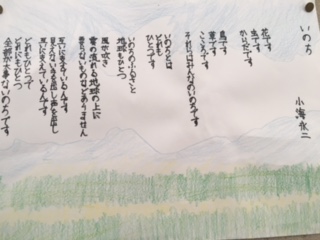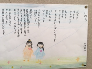 「いのち」という詩を視写し、廊下にも掲示しています。来週の参観時にご覧ください。