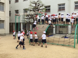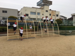 固定遊具を使って運動遊びです。登り棒にも挑戦!