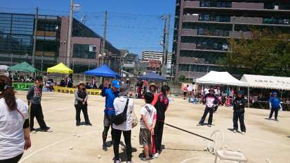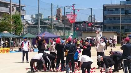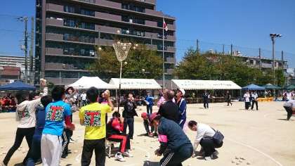 おなじみの玉入れです。来賓・役員参加競技です。みなさんの投げるコントロールがよくて、どんどん玉が入ります。