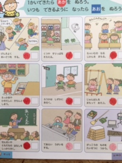 学校にはいろいろなきまりがあります。それは、みんなが安全で楽しく過ごすことができるようにするためです。どんなきまりがあるか、この前確認しました。今日は、だいたいいつもできているか、自分で点検をしました。あいさつ、靴そろえ、話の聞き方など、がんばっています。