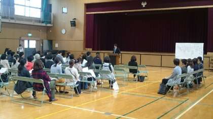 学習参観に続いて、講堂でPTA総会が行われました。平成28年度の事業・決算報告と平成29年度の事業・予算計画が審議されました。また、役員の改選が行われ、本年度の新しいPTAのスタートをきることとなりました。28年度の役員の皆さま、本当にありがとうございました。29年度の役員の皆さま、どうぞよろしくお願いします。そして、総会にご出席いただいた皆さま、ありがとうございました。