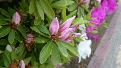 ビオトープだけではなく、校庭でもたくさんの自然を楽しめます。プールのそばや2年生の教室の窓側にはツツジが咲き誇っています。よく見てみると、開花した花以外にも、つぼみがあるのがわかります。ツツジの花の甘い蜜に引き寄せられて虫たちもやって来ます。