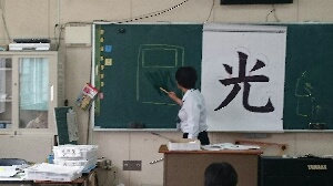 「光」という文字を練習しました。姿勢や筆の持ち方、点画に気をつけて書きました。4年生になって初めての書写の学習。緊張しながらも、自分の課題を解決しようと頑張りました。初めと最後では、ずいぶん違うことを友達どうして確認し合いました。みなさん、頑張ったら頑張った分だけ成長しましたね。
