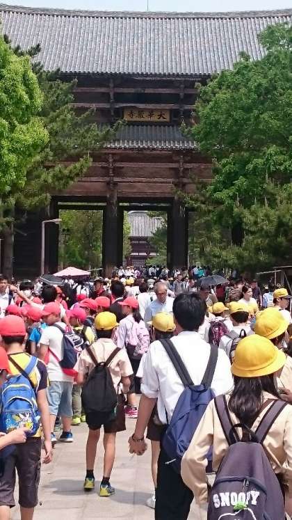 東大寺の南大門に着きました。すごい人の数です。さすが世界遺産!金剛力士像も、あうんの呼吸で歓迎してくれているようです。