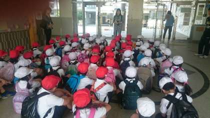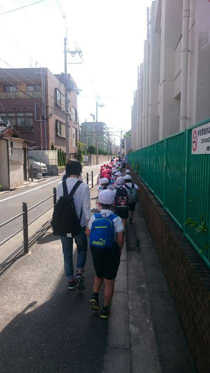 今日は1年生が校外学習に出かけます。扇町公園まで行きます。とてもいい天気です。気をつけて、いってらっしゃい!