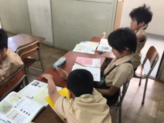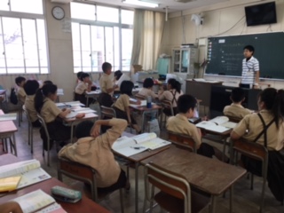 大阪市の人口の移り変わりとごみの量の変化を示したグラフを見て、気付いたことを話し合いました。「人口が増えているのにごみは減っているのは何故なんだろう?!」という課題意識をもち、グループで話し合いました。