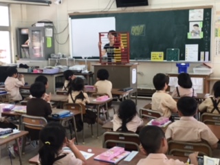 数の学習をしています。数唱とともに実際のものを数える活動をしながら「かず」についての認識を高めていきます。