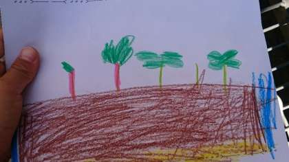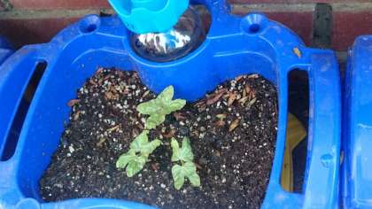 1年生が育てているアサガオの芽が出ました!多い子で4つも5つも発芽しています。出てきた芽をじっくり見て、絵を描きました。これから、どんな風に育っていくのでしょうね。