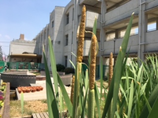 ビオトープの周りに背の高い植物がたくさん生えています。これは何でしょう?