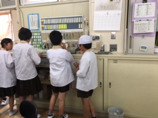 給食の時間には、それぞれのグループのゲームの説明やセールスポイントを発表しました。