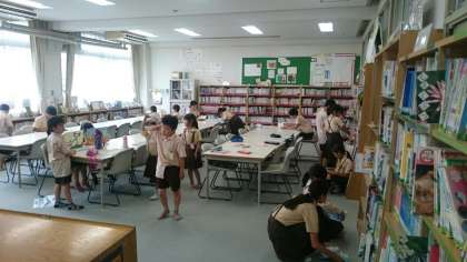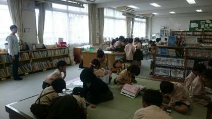 昼休みの図書館開放の様子です。たくさんの子どもたちが訪れて読書を楽しんでいます。水曜日の昼休みはふだんより時間が長いので人数が多いのです。また水曜日は、大阪工業大学からボランティアの学生さんに来ていただき、図書室でのお仕事を手伝ってもらっています。ありがとうございます!