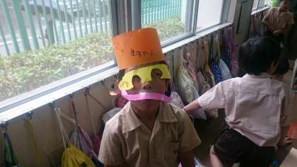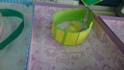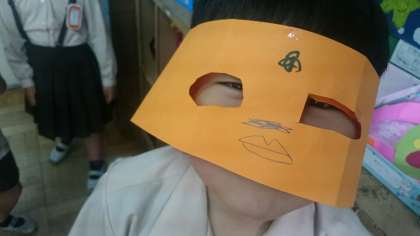 「わっかでへんしん」というテーマで工作を楽しみました。大きな輪、小さな輪を作り、思い思いにデザインし、かざりをつけました。それらを身に付けて変身することが目的です。子どもたちは終始、ノリノリで活動しました。非日常の自分になれることがとてもおもしろいのでしょうね。