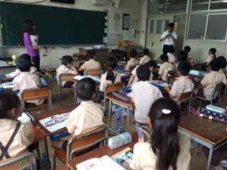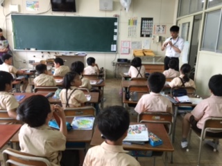 教頭先生が飛び入りで、「崖の上のポニョ」をリコーダーで演奏してくださいました。みんなは、「すご〜い!!」と感激。早く自分たちも吹いてみたいと早速リコーダーを取り出しました。3年生の終わりぐらいには、上手に吹けるようになるかもしれませんね。楽しみです。