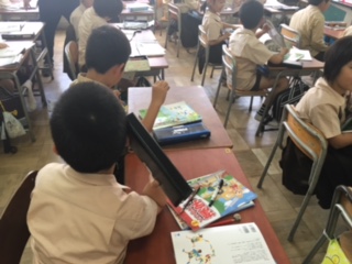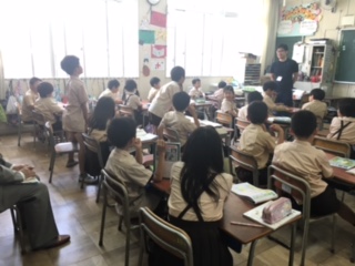 教育実習のA先生が1組で授業をしました。「こそあどことば」についての学習です。隣どうしでこそあどことばを使った会話をしてみました。普段何気なく使っていることばについて、どんな時にどういう使い方をするのか、改めて考えさせ、日常で使うことができるようにしていきます。