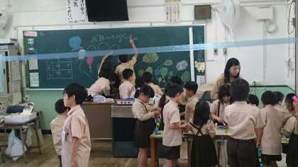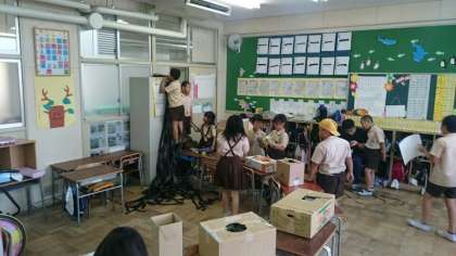 5時間目にたてわり班で、大宮こどもまつりの最後の準備をしました。これまでに重ねた話し合いで決めたことを、いよいよ実現化させます。みんなとてもはりきっています。