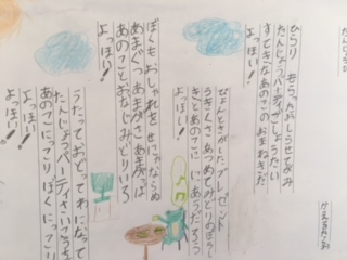 また、工藤直子さんの「のはらうた」の詩を試写して廊下に掲示しています。