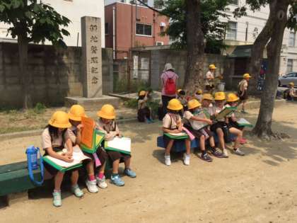 今日は2回目のまちたんけんに行きました。町の中でお店や神社、幼稚園のバス、それから公園で生き物を発見したようです。6月13日に3回目のまちたんけんとして、大宮商店街に行きます。このときに保護者のみなさまにも一緒に子どもたちを見守っていただければと思います。よろしければ、ご協力お願いします。