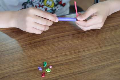 ペーパーをクイリングバーにクルクルと巻き付けていくのに、初めは時間がかかっていたのですが、慣れてくると上手にまけるようになっていきました。