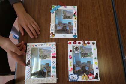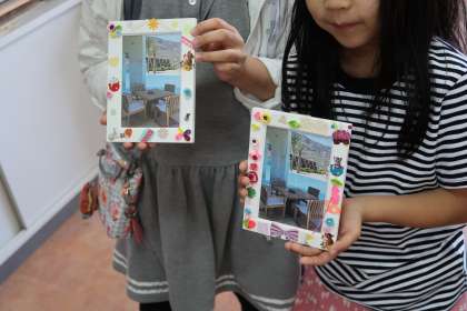 そして、それぞれ世界に一つしかない、素敵なフォトフレームが出来上がりました。家に帰って、写真を入れて飾ってくださいね。