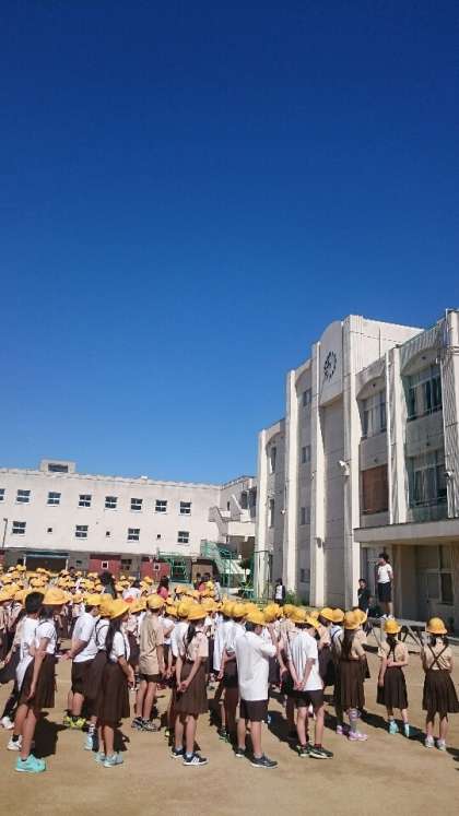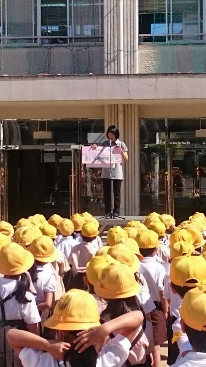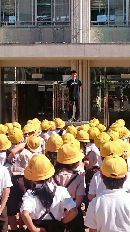 今日の児童朝会は、まず校長先生から避難訓練についての心構えについてお話がありました。