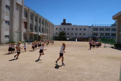 事前に各クラスで、「おかしも」(お…おさない、か…かけない、し…しゃべらない、も…もどらない)の大切さを指導し、訓練に臨みました。