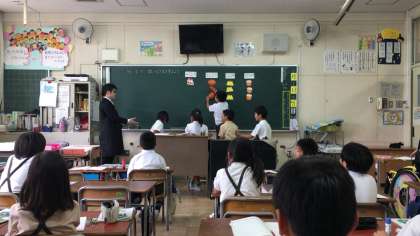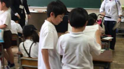 4時間目、教育実習生のH先生の研究授業でした。3桁のたし算の計算の仕方を新しく学習しました。筆算の仕方では、3桁になっても2桁の時と同じように、いちのくらあから順にたしていけばよいことを確認しました。自分の考え方をペアで伝え合うこともしました。
