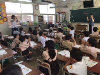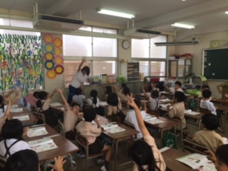 グー・チョキ・パーのリズムに合わせてリズム打ちをしてじゃんけんをします。先生とのじゃんけんは、大盛り上がりです!!