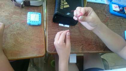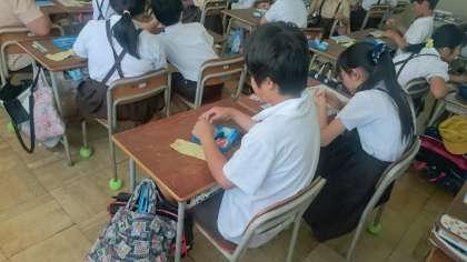 まだまだ慣れない裁縫道具。針の穴に糸を通すことから始まり、玉結びに玉止めといきなり難しい活動に忍耐力が試されます。子どもたちは、静かに粛々と活動を続けていました。何でも機械やロボットに頼りがちなこの時代だからこそ、手作りの良さを知ってほしいです。時間がかかってもいいんです!