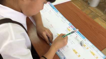 分数のかけ算・わり算がまざった計算の仕方を考えました。練習問題をどんどんすすめ、満足していました!