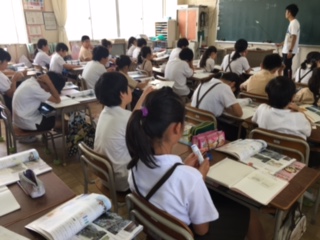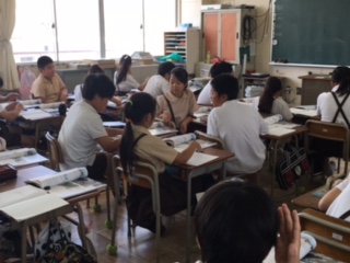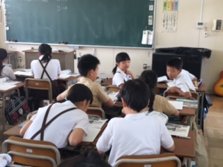 沖縄と高松の1年間の気温・降水量を表したグラフを見て、気づいたことをペアやグループで話し合いました。2つのものを比べて違いなどを見つけ、理由などを考えることは思考力を高めます。