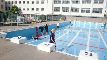 15日のプール開きに向けて、放課後にプール清掃を行いました。とてもきれいになりました。浄化装置の使い方も確認しました。木曜日が楽しみですね。