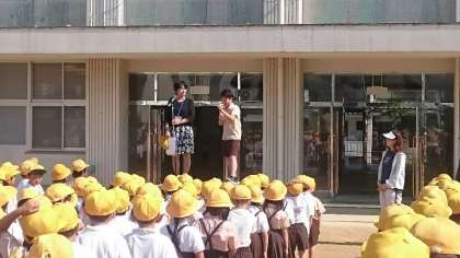 また、健康委員会から万歩計プロジェクトの説明がありました。1日4500歩が目標です。3年生以上の人たち、どうぞ頑張ってください。
