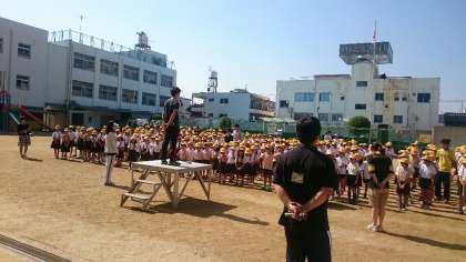 今日の朝会では、日本拳法の大会で準優勝した6年生の表彰を行いました。拳法の型をみんなに披露してくれました。夢中になって頑張っていることがすばらしいです。次は全日本大会に進むそうです。更なる活躍を期待します。