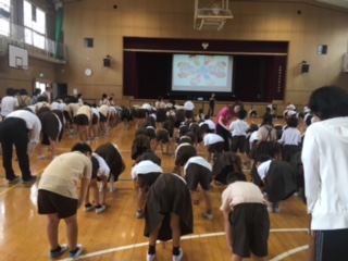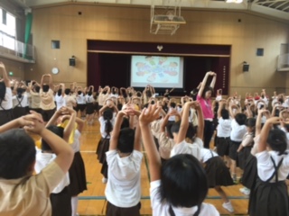 今日の児童集会は、音楽集会でした。2回目の音楽集会です。今日は全校で「世界がひとつになるまで」を歌いました。