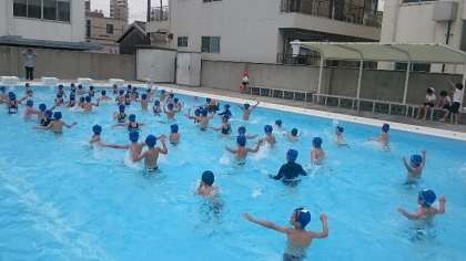 プールに入ってからはディズニーの音楽に合わせて手を動かしたり、歩いたり、もぐったりしてどんどんエクササイズが進みます。楽しい音楽に合わせて動くので水への恐怖や緊張が和らぎます。体が固くなると水に浮かなくなるので、リラックスすることはとても大切です。