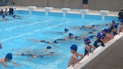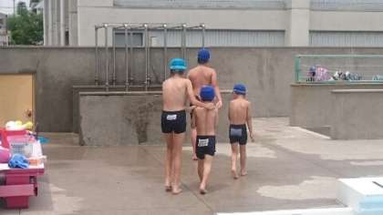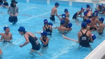 こうやって浮くんだよ、とお手本を見せたり、1年生が浮くように抱っこしてあげたりして6年生は大活躍していました。時には、1年生より楽しんでるやん!と先生につっこまれる6年生もいました。でも、寒くなってプールから上がる1年生に付き添う6年生の姿が、とても優しく見えました。