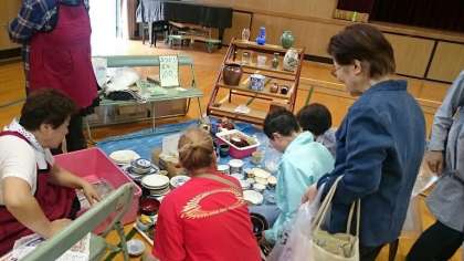 たくさんの品物が出品され、大勢の地域の方がいい品を求めて参加されています。お昼頃までの開催です。このまま小雨の天気でもってくれればと思います。